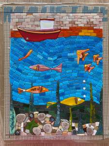 Members of the Mosaics Circle are completing projects at home. Karen and Elizabeth sent us pictures of their wall friezes