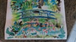 The Art Circle is undertaking to copy Claude Monet’s famous painting of the Japanese bridge over his water lily pond at his home in Giverny France. Rajul will teach us some techniques in acrylic paints but Shelley and Sara made their own practice attempts. It will be interesting to see how they improve after some tuition!