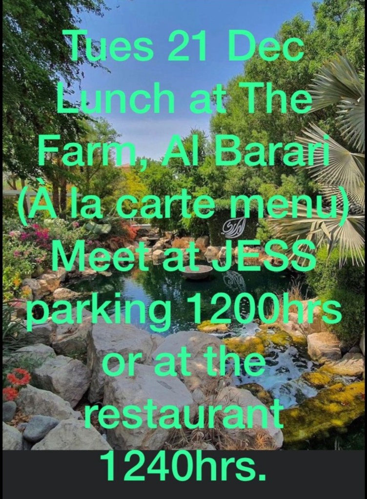 Allison is organising a lunch instead on Tuesday 21st December at The Farm Restaurant, Al Barari (A La Carte menu).
