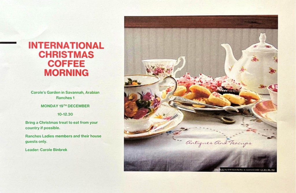Carole Binbrek is organising an International Christmas Coffee morning on Monday 19th December 10am to 12.30pm.