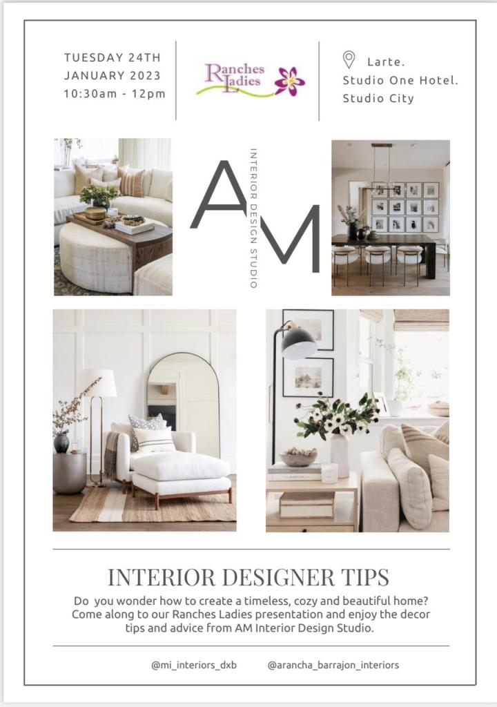 Join us at Larte, Studio One Hotel on Tuesday 24th January for a special presentation by AM Interior Design Studio. Get helpful interior design tips while enjoying tea or coffee, catching up with old friends and making new ones.
