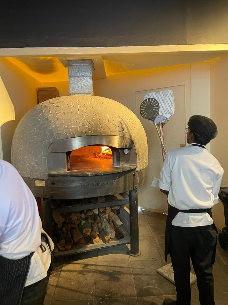 First things first, we donned our chefs hats and aprons and listened to Guiseppe and Geualdo… two Italian chefs from Sicily. They spoke to us about the benefits of eating local produce seasonally. Then we were given our own plates with pre-prepared dough. We were shown how to knead the air out of the dough and then top it with tomato sauce and our choice of mushrooms, olives, salami and mozzarella cheese. Thereafter, all that remained was to have our ‘masterpieces’ cooked in the pizza oven. This took only 5 to 10 mins. The aroma in the vicinity was delicious… we were all feeling hungry. Finally our pizzas were served and they were delicious! It was a thoroughly enjoyable morning with lots of banter, happy faces and stomachs.
