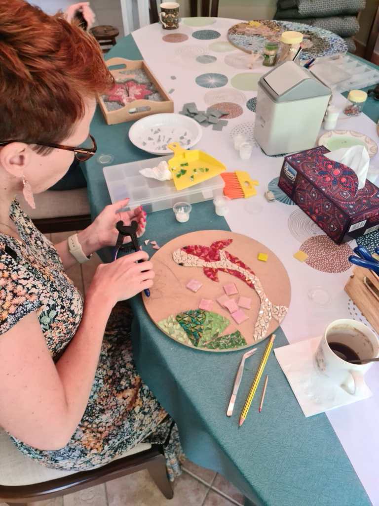 The Mosaics Circle are having fun creating some beautiful pieces.
