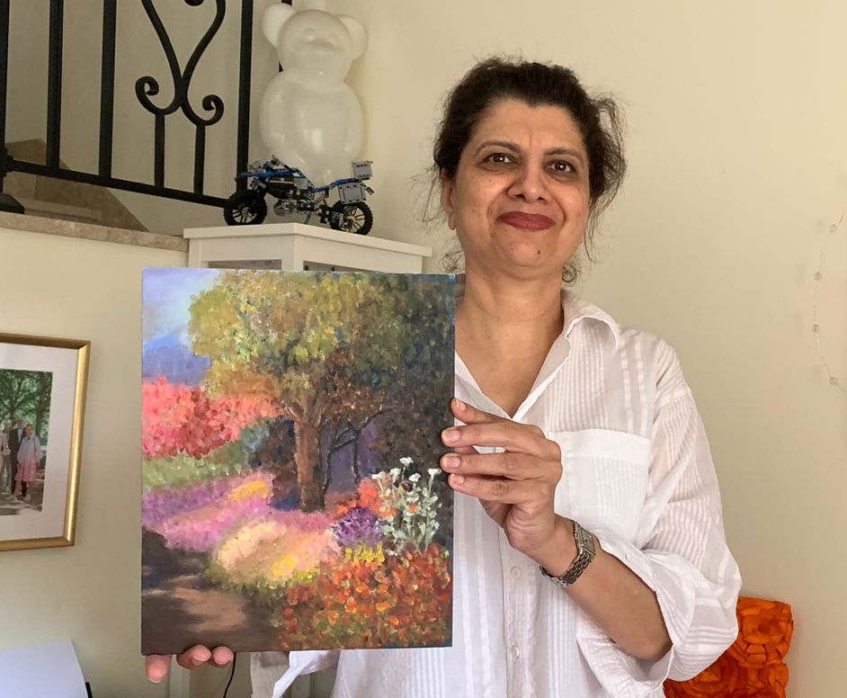 The Art Circle, led by Rajul, have been experimenting with different techniques and creating stunning paintings on various themes. They meet on Thursdays from 10am to 12 noon.