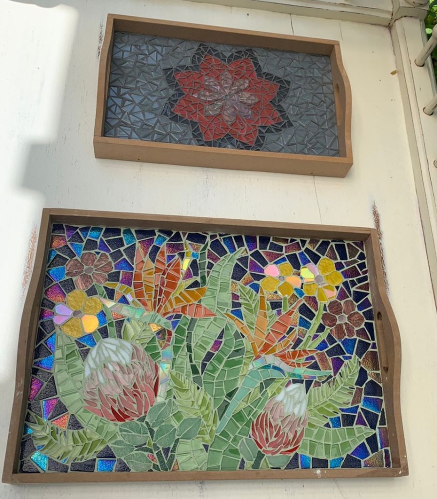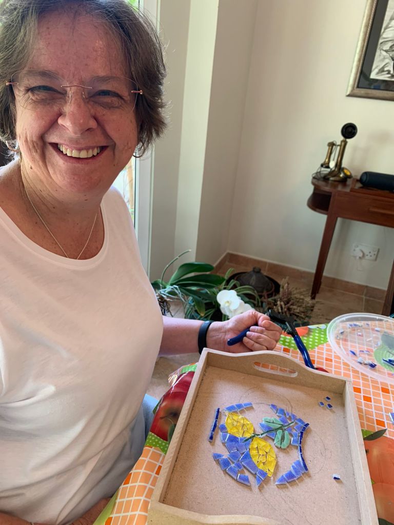 The Mosaics Circle are having fun while creating some beautiful pieces.