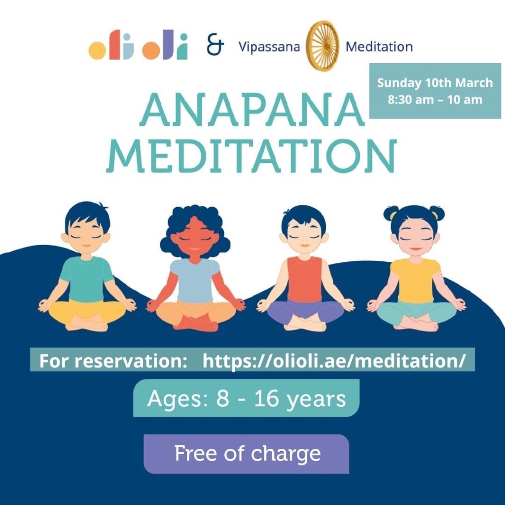 Kids aged 8-16 years can join for a FREE Anapana meditation session conducted by Vipassana Center UAE at OliOli in Al Quoz, and learn how to calm the mind through the awareness of natural breath!