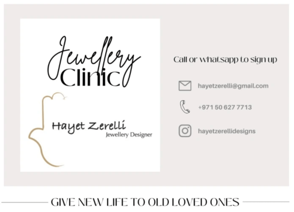 The next Jewellery Clinic and Open House is planned for Thursday 20th June from 10am to 5pm, in Arabian Ranches 1. Come along for a free jewellery up-cycling consultation, and browse a range of hand-made items.