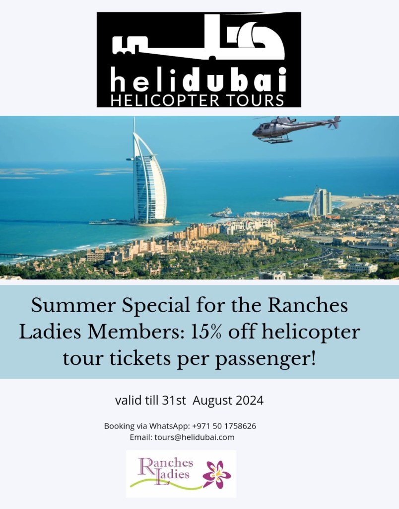 Ranches ladies who are in Dubai over the summer are welcome to meet for coffee on Tuesday mornings. Someone will also be available on Tuesday for those who want join or renew their membership.