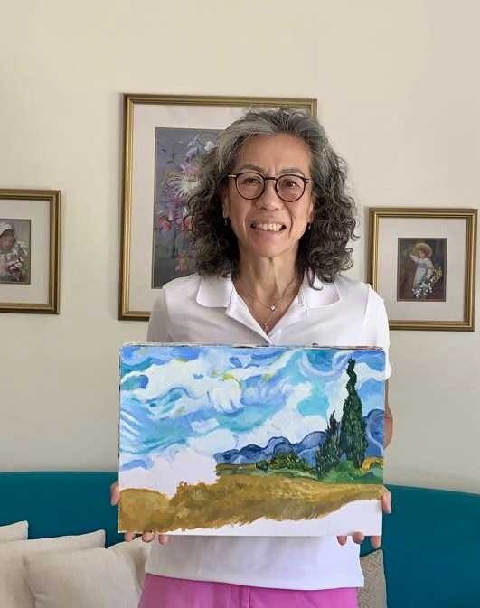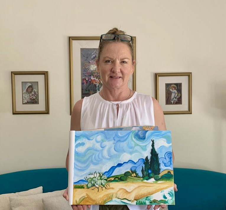 The Art Circle had a lovely class last week, with many ladies being in a creative & relaxing mood after a long Summer break. They are working on a group project, Wheat field with cypresses, by Van Gogh.