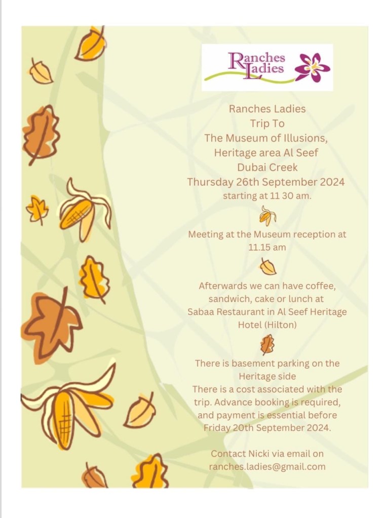 Ranches Ladies coffee morning, with new membership and renewals, for next Tuesday 17th September 2024 will be at a meeting room on 2nd floor instead of Larte from 10.30-12 noon.