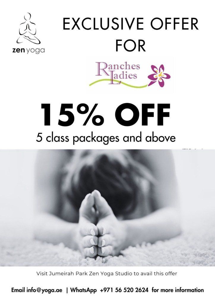 Zen yoga 15 % off all packages of 5, 10 or 15 classes – show valid membership card.