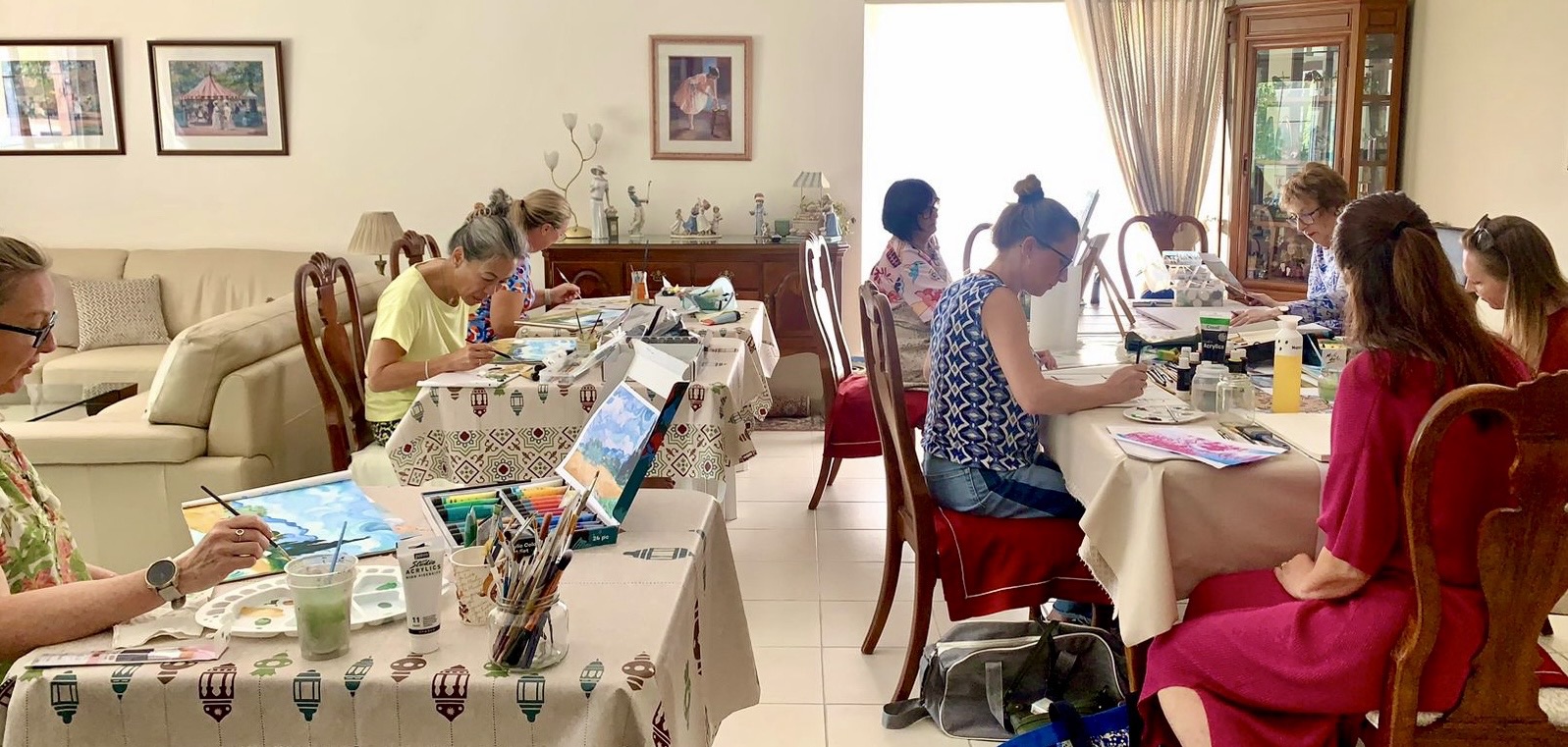 The Art Circle, led by Rajul, meet in Arabian Ranches 1. They had a great class last week and it was nice to see ladies paint so passionately as well as relax and enjoy.