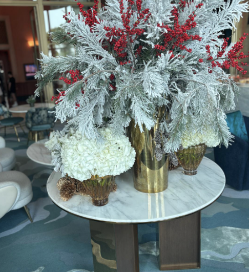We built our creations step by step under the watchful guidance of the Gorgeous Flowers team, using a range of fresh green foliage, Nobilis, Conifer and Pine to decorate our oasis base. The team made sure we left with creations nothing short of special, reminding us to fill in the gaps between the foliage with Pine Cones, Bunny Tails, Fluffy Eillow, Ilex Berries, Cotton, Lotus Heads, Cinnamon Sticks, Whole and Sliced Dried Oranges. Once we had the foliage set, we adorned our centerpieces with a wide range of additional decorations of various colours including baubles, ribbons, Santa hats and some gold and silver sprays. No two creations were the same, all individual works of art to enjoy.
