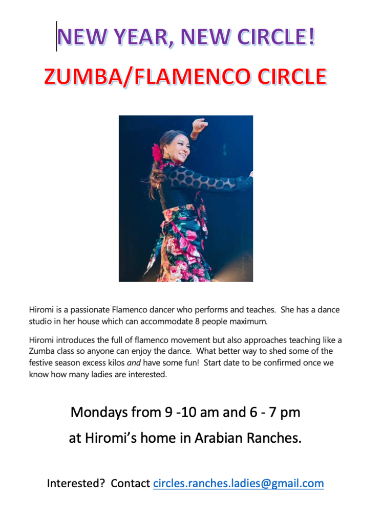 Art circle runs by Rajul on Mondays (Beginners) and Thursdays (Regular students) from 10:00 am to 12:00 pm in Arabian Ranches 1. To be a member of Art circle please email circles.ranches.ladies@gmail.com
