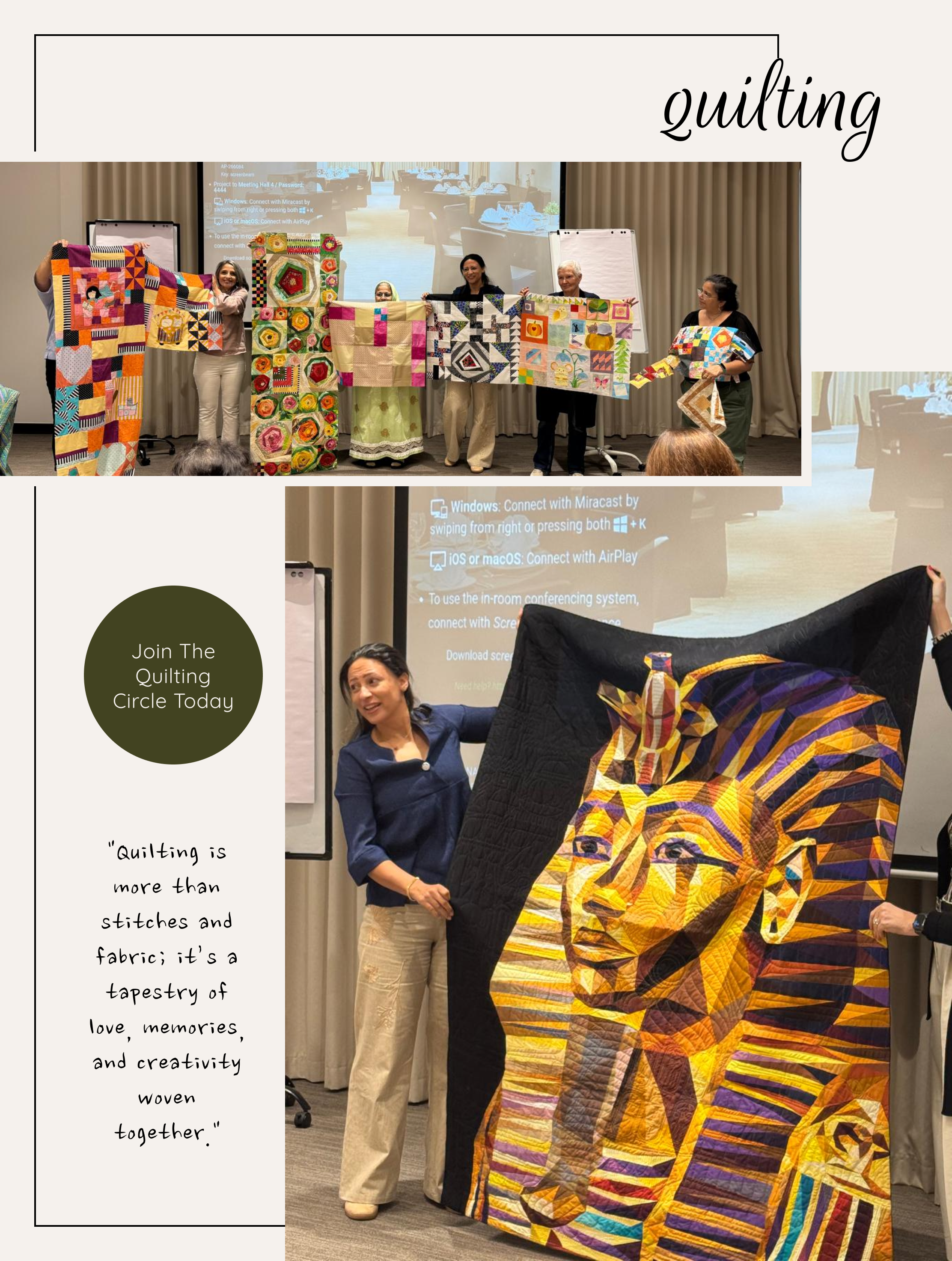 The Quilting Circle enjoyed a wonderful morning, with members proudly showcasing their progress from recent classes and the ‘Block of the Month’ project. We were delighted to welcome Janine Ibbini from the Abu Dhabi Quilting Guild as our guest speaker, who shared her inspiring quilting journey and experiences with us. A big thank you to everyone who participated and contributed to making it such a special gathering