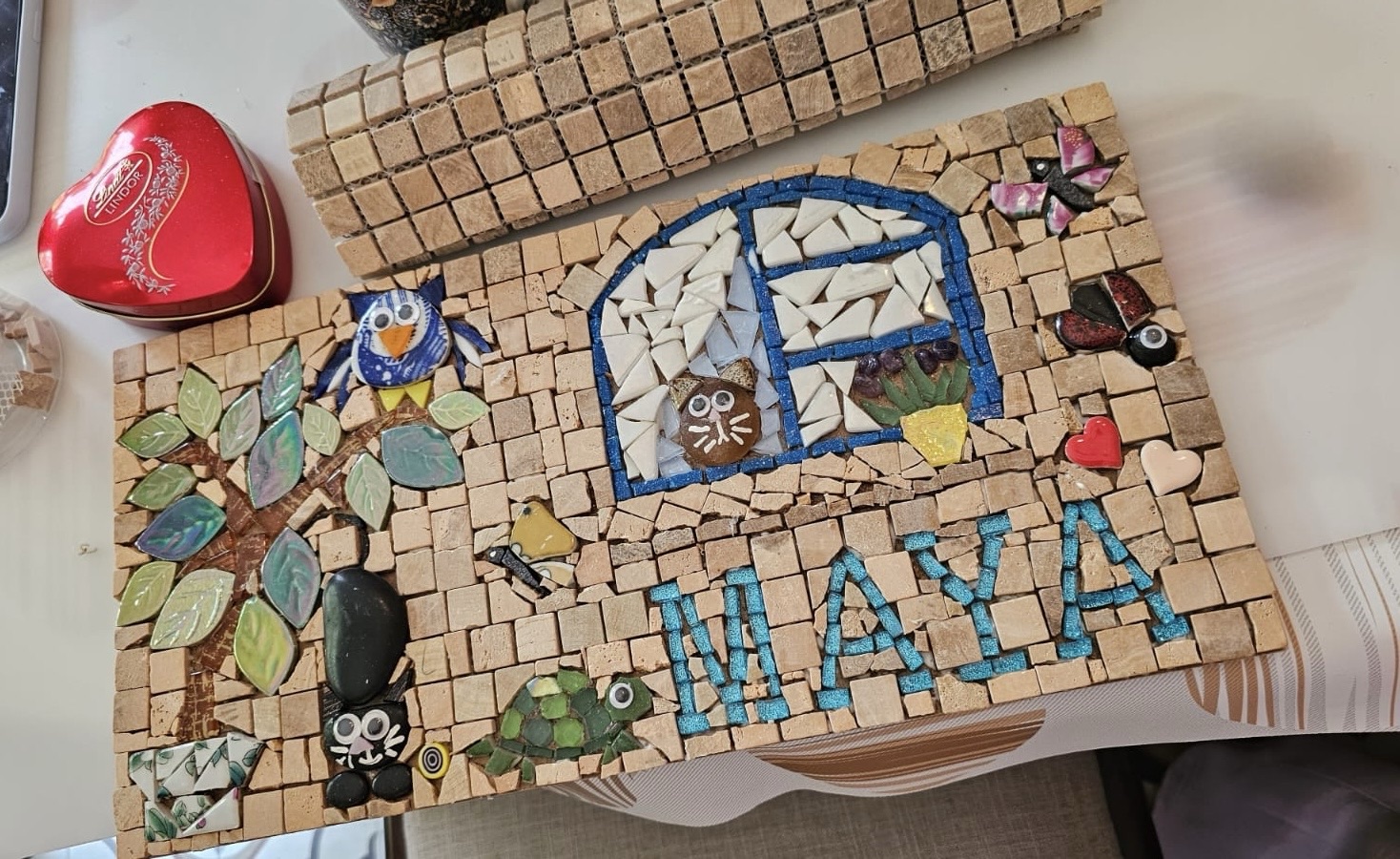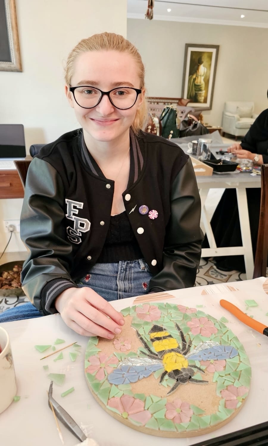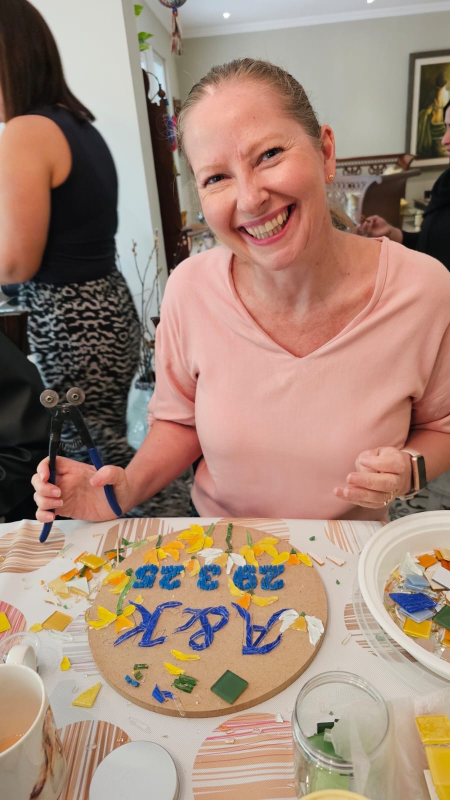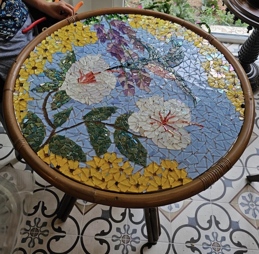The Mosaics Circle had a Lovely morning doing mosaics, putting a lot of love into all the work.
