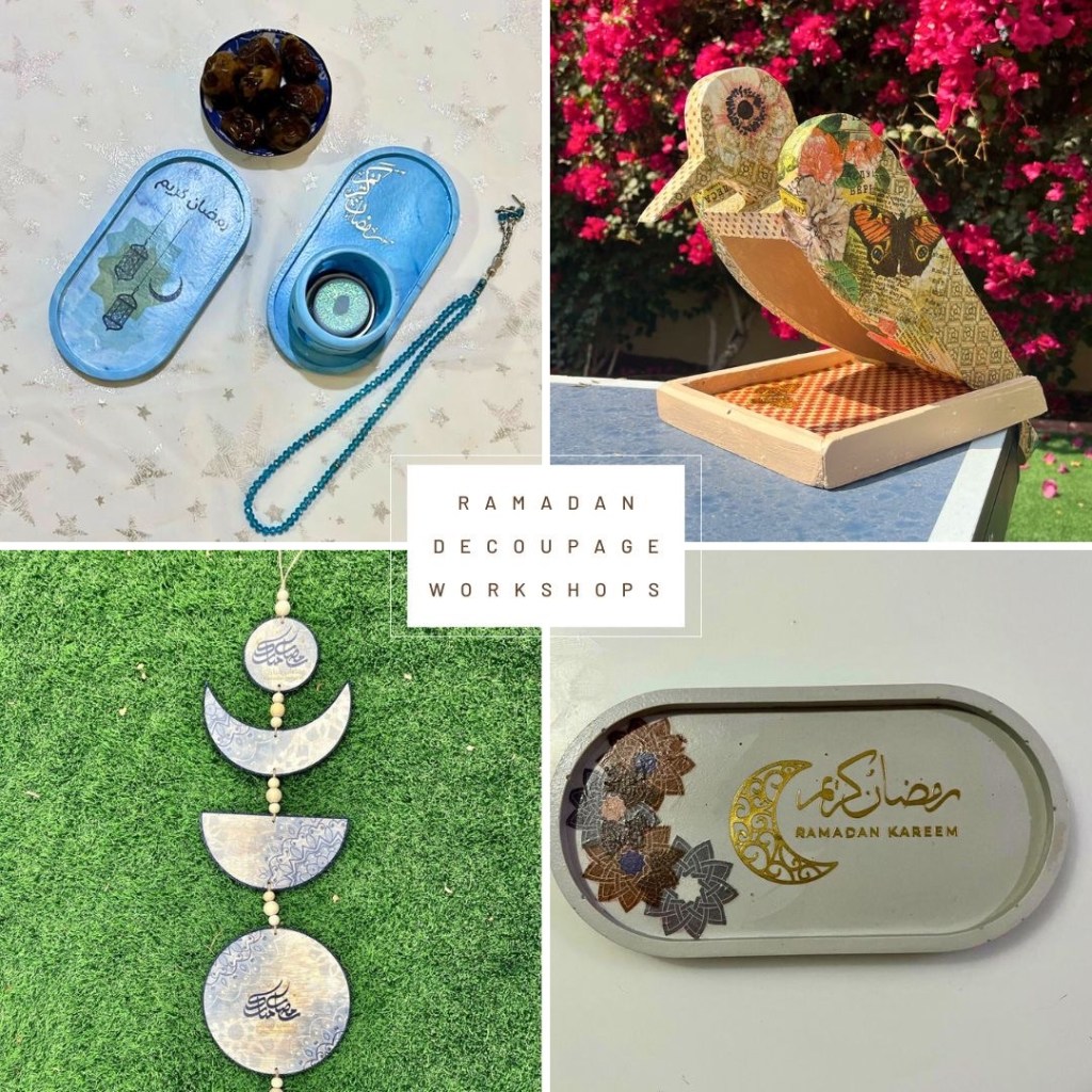 Our Ranches Ladies Decoupage Circle created beautiful Ramadan-themed pieces this week, each one capturing the spirit of the season. We’re excited to continue our decoupage workshops throughout Ramadan, every Thursday from 10 AM to 12:30 PM. Join us for a creative and relaxing morning.