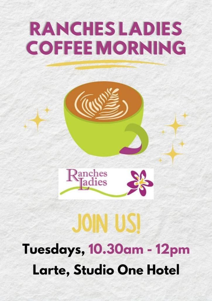Ranches Ladies Tuesday coffee mornings takes place at Larte, Studio One Hotel, from 10:30am to 12pm. Ladies of all ages, wherever you live, are welcome to join us.