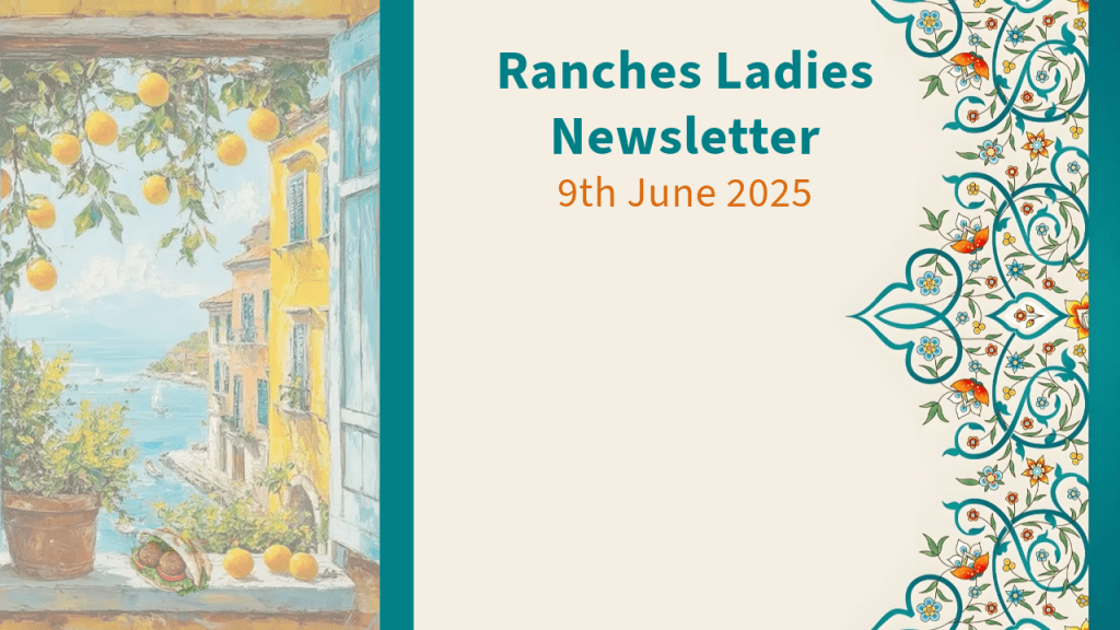 Please send any articles or items for the newsletter to ranches.ladies@gmail.com (by Friday midday for inclusion in the next Monday’s newsletter.)