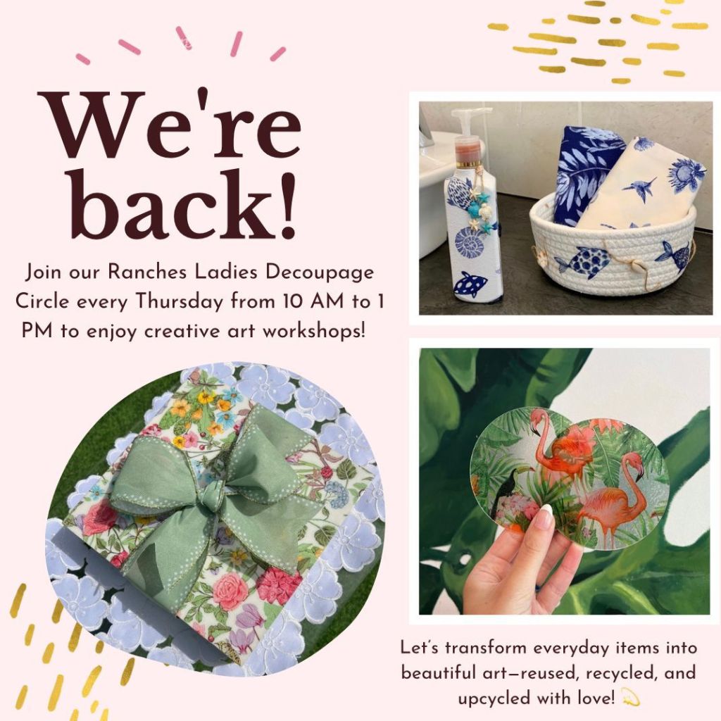 We’re looking for passionate and detail-oriented volunteers to help compile the Ranches Ladies Newsletter. We can help with any training. If you have a flair for writing, a keen eye for detail, and a love for bringing our community’s stories to life, we’d love for you to join our team. Help us create a polished, engaging newsletter that reflects the vibrant spirit of the Ranches Ladies. If you’re interested, please reach out and let us know how you can contribute. Your creativity and input will make all the difference!
