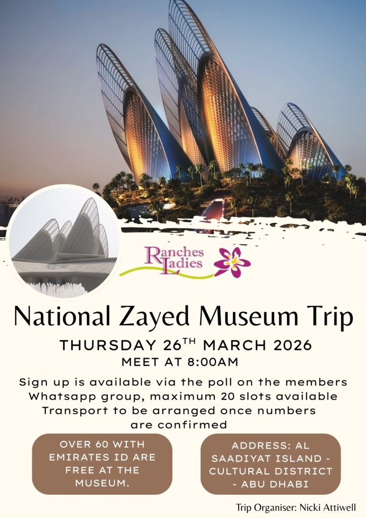 Due to the fluidity of the current situation and in order to maintain the Ranches Ladies community, messages will be posted on WhatsApp which members can access to inform them of any necessary changes to planned events, trips or meetings. Hopefully we will be able to resume our full program as soon as possible.