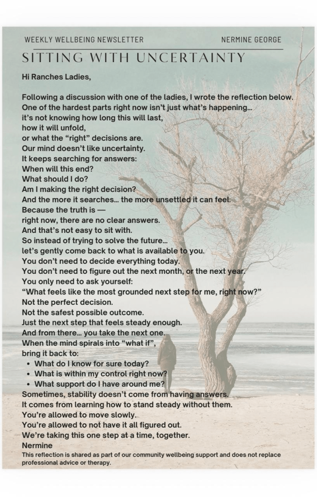 Email circles.ranches.ladies@gmail.com if you would like to join any circle. If you are a member but not yet on the members only Ranches Ladies Whatsapp group please email ranches.ladies@gmail.com. Enquiries will be responded to within one working day.