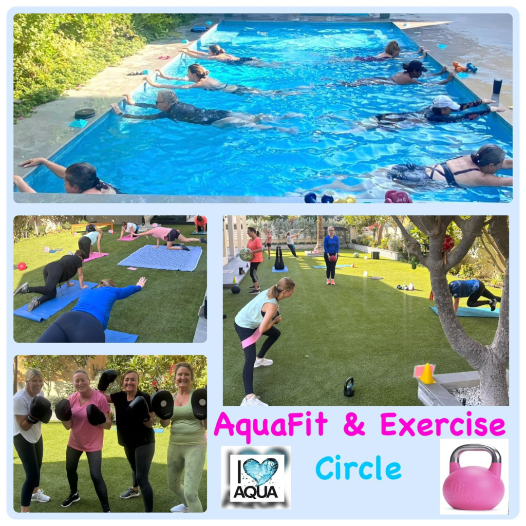 In the Summer the AquaFit Circle enjoy a fun, circuit-style workout while splashing in the cool pool waters. In the winter we continue exercising by taking our circuit workouts into the lovely garden.